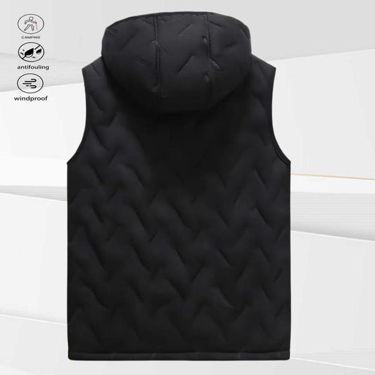 KZZ black hooded fleece vest, fleece lining for warm practicality, zipper pockets convenient