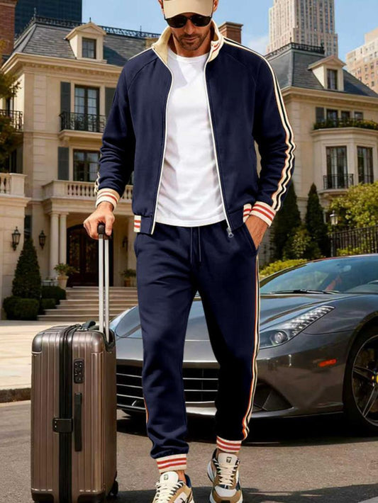KZZ Men's Fall Fashion Set - Lightweight Loose-Fit Casual Stand Collar Sportswear