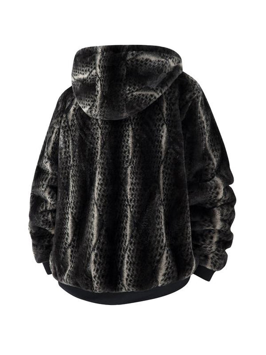 KZZ Men's Winter Fashion Fleece Jacket, Trendy Leopard Print Double-Sided Warm Coat