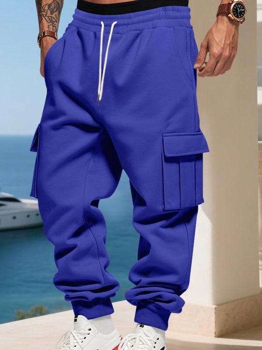KZZ pants men sweatpants Men's Solid Thermal Lined Drawstring Oversize WaistPants