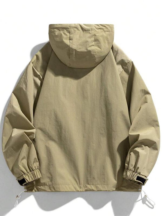 KZZ Men's Letter Print Drawstring Pocket Half Zipper Hooded Jacket