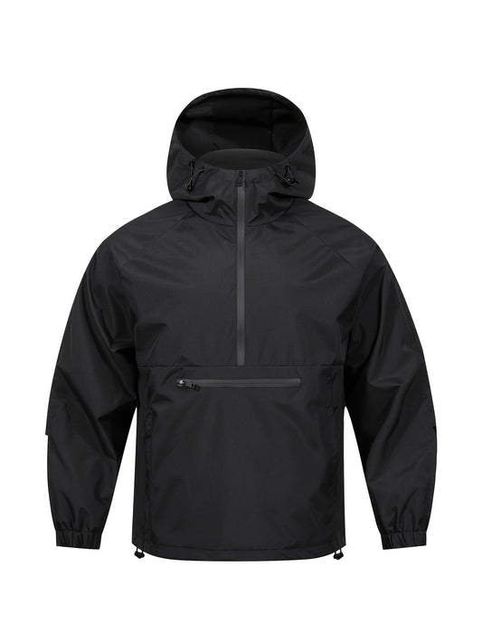 KZZ Men's Solid Color Half Zip Pocket Hooded Jacket