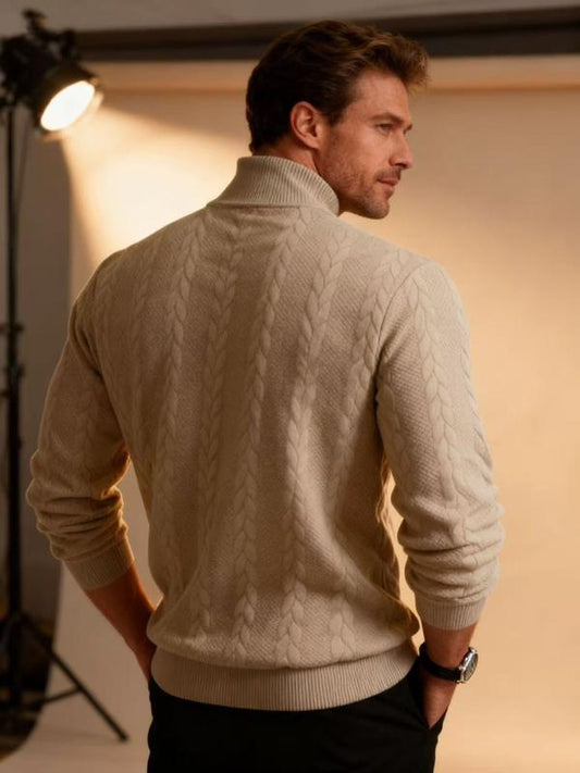 KZZ Men's solid color knitted jacquard turtleneck sweater