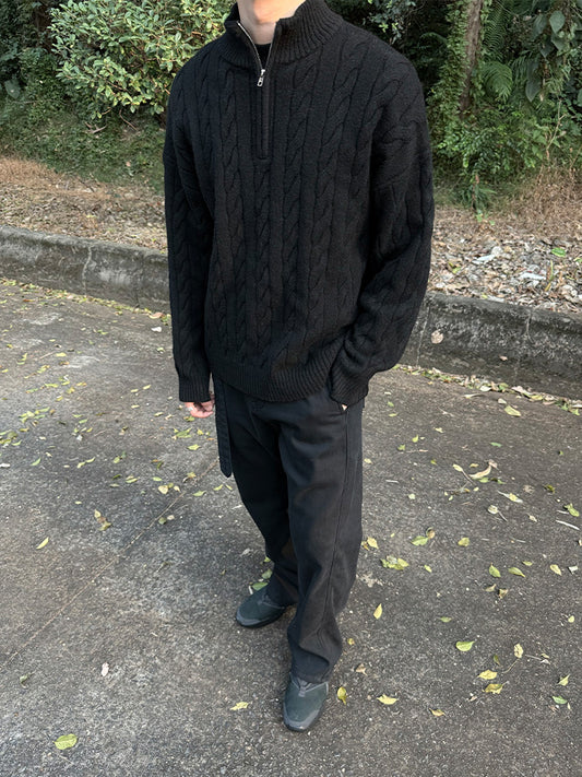 KZZ Men's solid color zipper sweater, fashionable knit long sleeved
