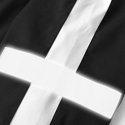 KZZ Men's Casual Sports Hooded Splicing Set,Reflective Strips on Sleeves Elastic Drawstring Design on Pants