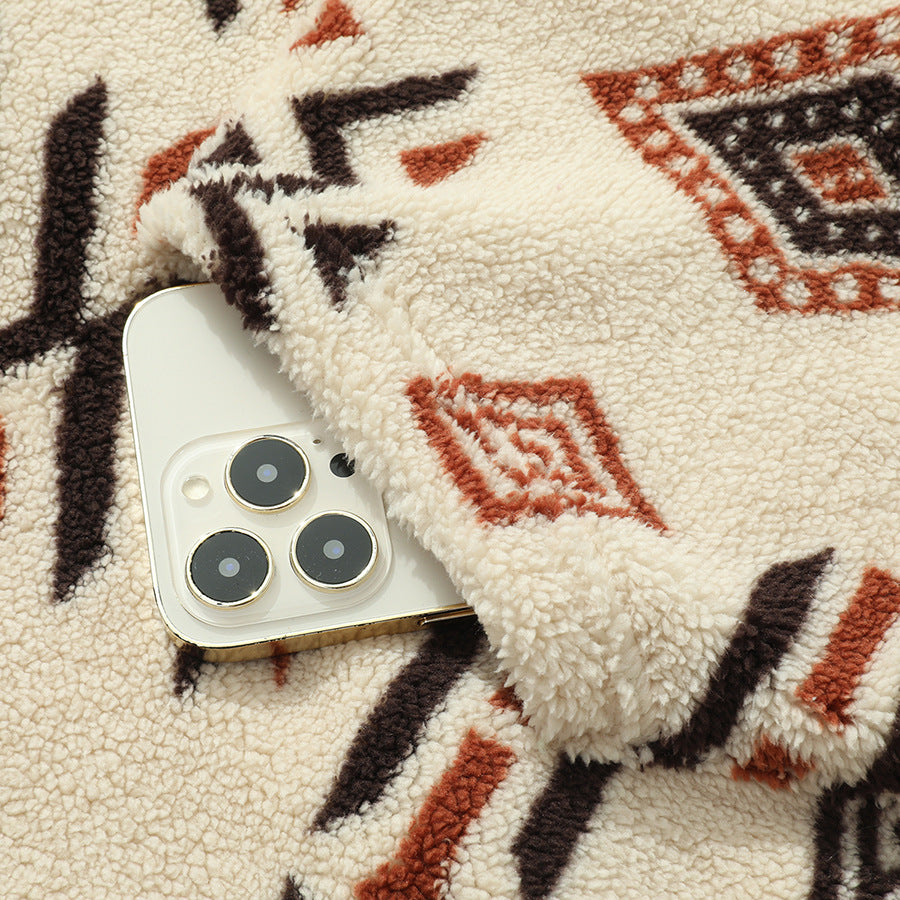 KZZ Men's Ethnic Pattern Drop Shoulder Zipper Sweatshirt