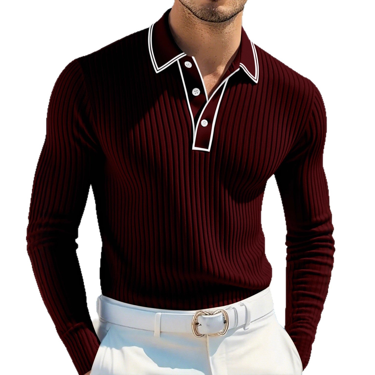 KZZ Men's Long Sleeve Polo Shirt Jacquard Fabric Collared Top